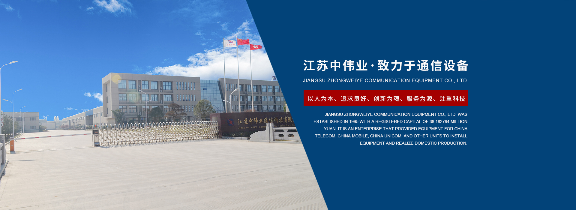 江蘇中偉業(yè)通訊設(shè)備有限公司創(chuàng)建于1995年,注冊(cè)資本為3818.2764萬元,是我國(guó)較早為華為、中國(guó)電信、中國(guó)移動(dòng)、中國(guó)聯(lián)通等單位供應(yīng)機(jī)站安裝材料的公司,并與其建立了長(zhǎng)久穩(wěn)定的合作關(guān)系。
